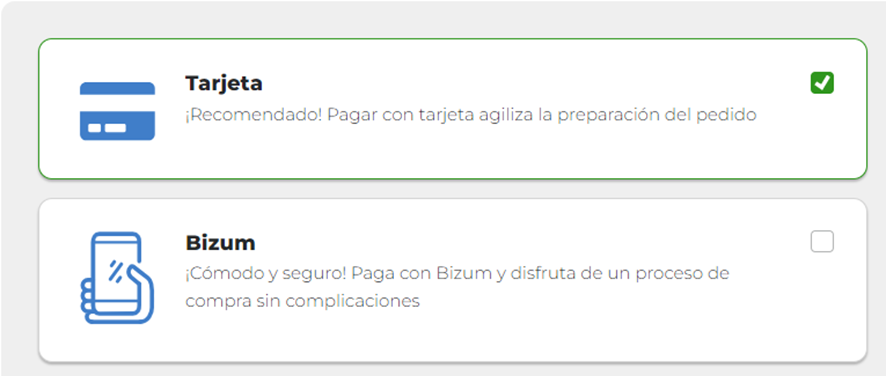 Al finalizar el proceso de compra, será necesario seleccionar la forma de pago.
